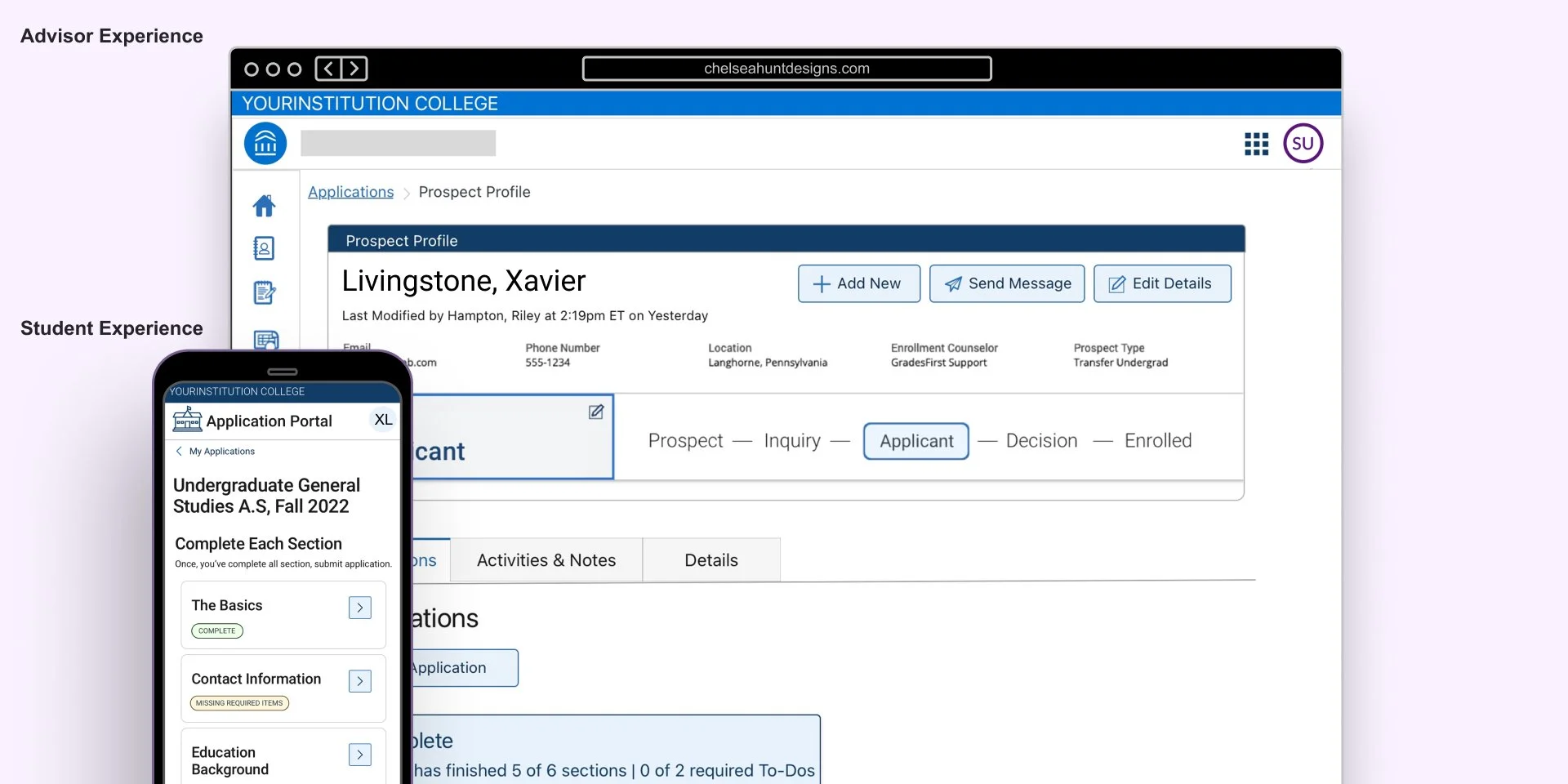 Designed for SaaS CRM to help institutions recruit and track prospective students and applicants.